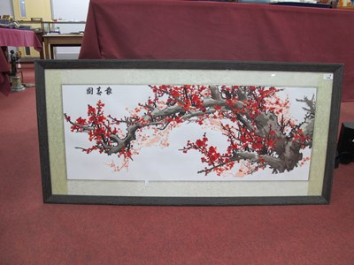Lot 1308Oriental - Embroidered panel of prunus blossom,...