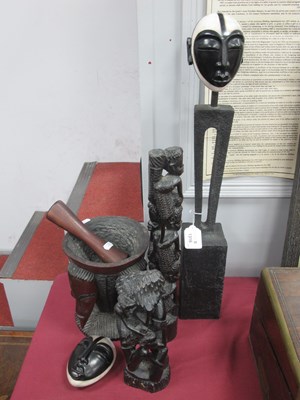 Lot 1306African Carved Hardwood Bust, with plated hair,...