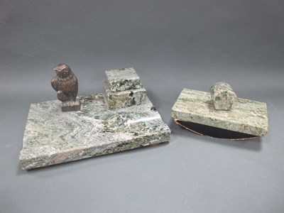 Lot 1309Green Marble Desk Stand, with square form ink...