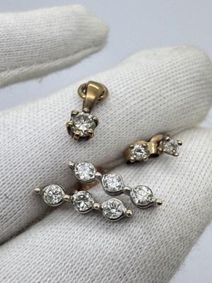 Lot 147A Pair of 9ct Gold Three Stone Diamond Drop...