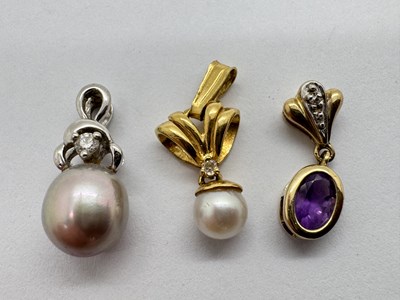 Lot 168A Freshwater Pearl and Diamond Inset Pendant,...