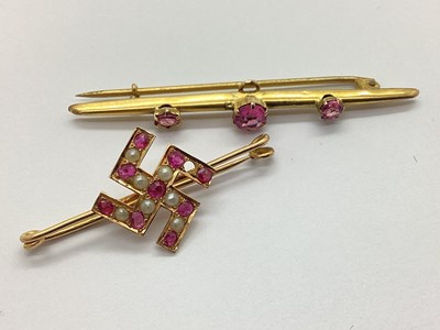 Lot 149An Antique Love Knot Style Bar Brooch, stamped...