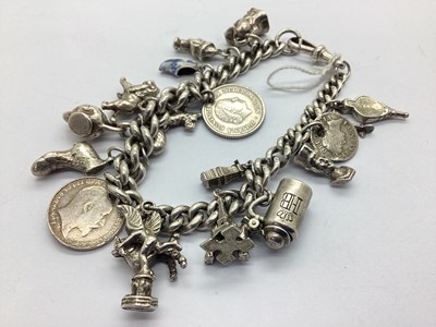 Lot 179A Hallmarked Silver Curb Link Charm Bracelet,...