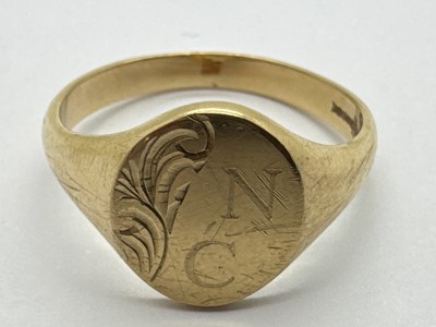 Lot 97A 9ct Gold Gent's Signet Ring, the oval panel...