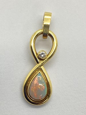 Lot 156An 18ct Gold Diamond and Opal Drop Pendant, of...