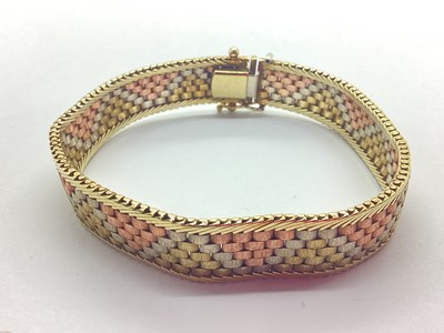 Lot 160A Tri-Colour Flat Link Bracelet, the brick...