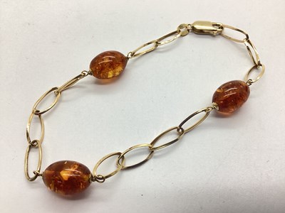 Lot 174A Modern 9ct Gold Amber Bead Bracelet, 19.5cm...