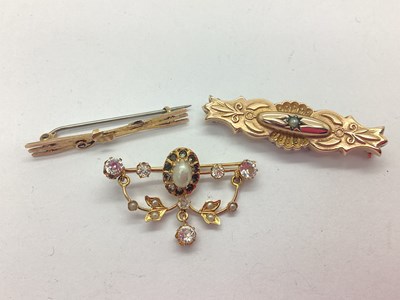 Lot 151An Antique Style Three Stone Bar Brooch,...