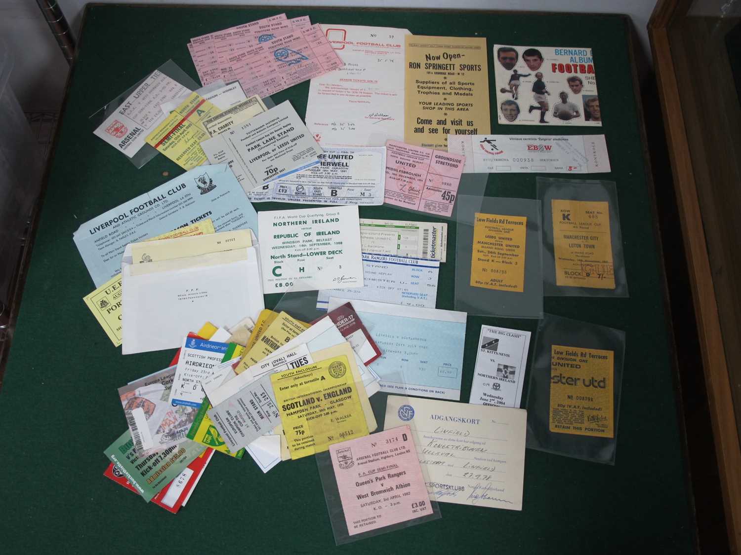 Tickets - 1970's Leeds United v. Manchester United (x 2). 62-3 Manchester City v. Luton - League Cup. 1982 Highbury F.A Cup Semi (x 2). League Cup Final 1969-80. 1990 Villa v. Chelsea. 70s League Cup Tottenham v. Liverpool or Leeds. Four Sheffield Wednesday 79-80 - unused. Irish, Scottish. 1974-5 Manchester United v. Middlesborough - League Cup Replay, etc, approximately forty-nine.