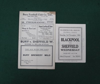 Lot 414 - Bury v. Sheffield Wednesday Programmes, 1946-7...