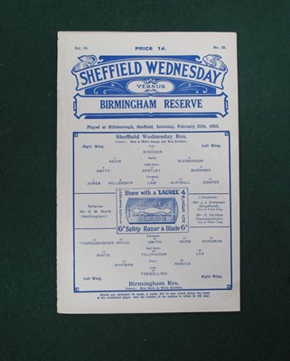 Lot 480 - 1932-33 Sheffield Wednesday Reserves v....