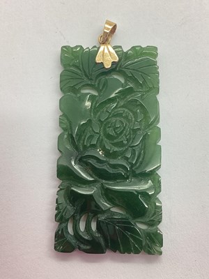 Lot 89 - A Carved Green Hardstone Panel Pendant, of...