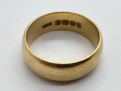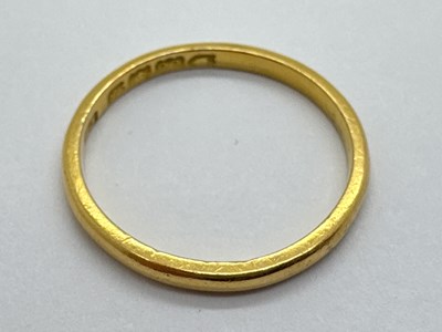 Lot 28 - A 22ct Gold Slim Wedding Band, of plain design...
