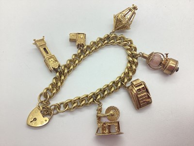 Lot 64 - A 9ct Solid Gold Curb Link Charm Bracelet, to...