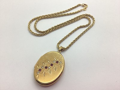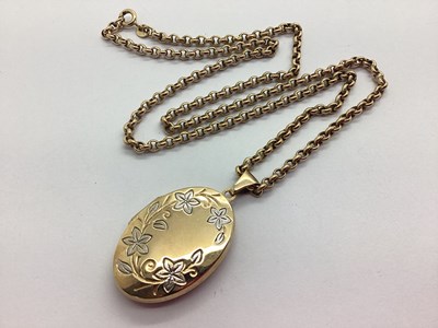 Lot 82 - A Modern 9ct Gold Oval Locket Pendant, two...