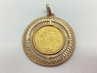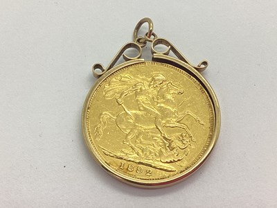 Lot 71 - A 1892 Victoria Sovereign, loose set within...