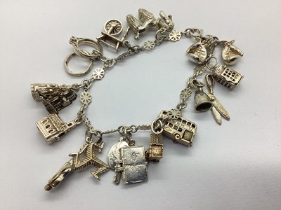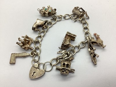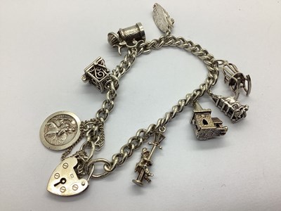 Lot 114 - A Hallmarked Silver Curb Link Charm Bracelet,...
