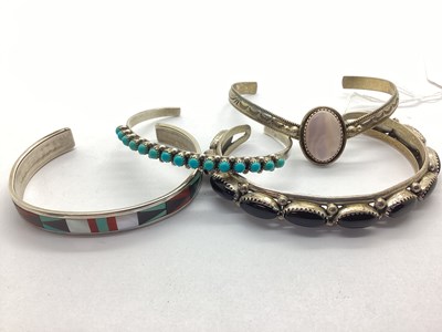 Lot 125 - A Small Collection of Navajo Style Bangles,...