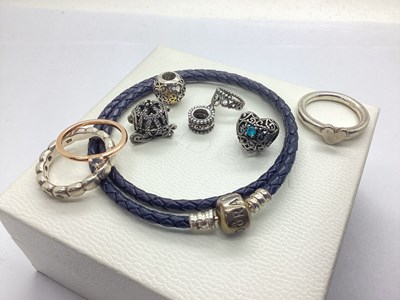 Lot 123 - Pandora; Blue Braided Leather Wrap Bracelet,...