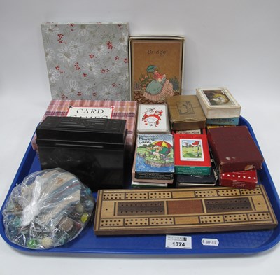 Lot 1374 - Black Bakelite Bridge Box Holding Cards, crib...