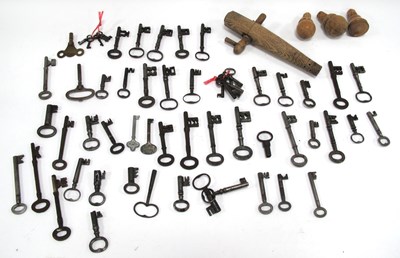 Lot 1319 - XIX Century Keys, with some later, wooden tap:-...