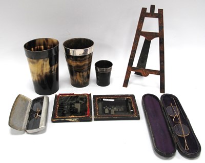 Lot 1310 - Three XIX Century Horn Beakers with Silver...