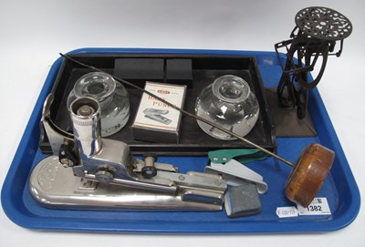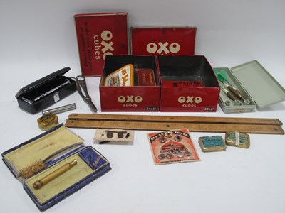 Lot 1364 - Tins, razors, grape scissors, record needles,...