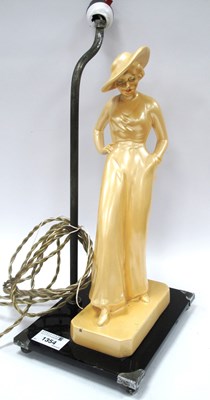 Lot 1354 - Art Deco Table Lamp of a Lady Wearing a Hat,...