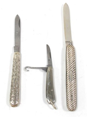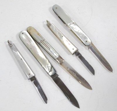 Lot 1293 - Silver Bladed Mother of Pearl Fruit Knives -...