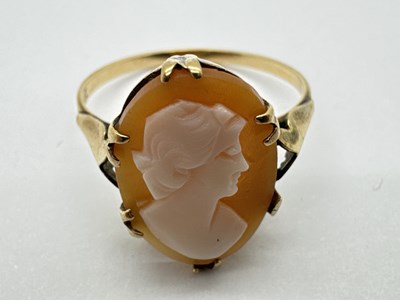 Lot 76 - A Vintage Carved Shell Cameo Ring, the oval...