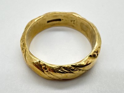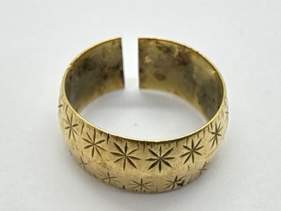 Lot 68 - An 18ct Gold Wide Wedding Band, of starburst...