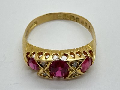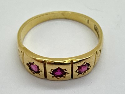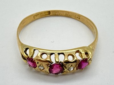 Lot 57 - An Antique 18ct Chester Gold Three Stone Ring,...