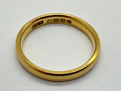 Lot 44 - A 22ct Gold Slim Wedding Band, of plain design...