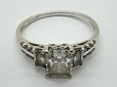 Lot 74 - A Modern CZ Set Three Stone Ring, graduated...